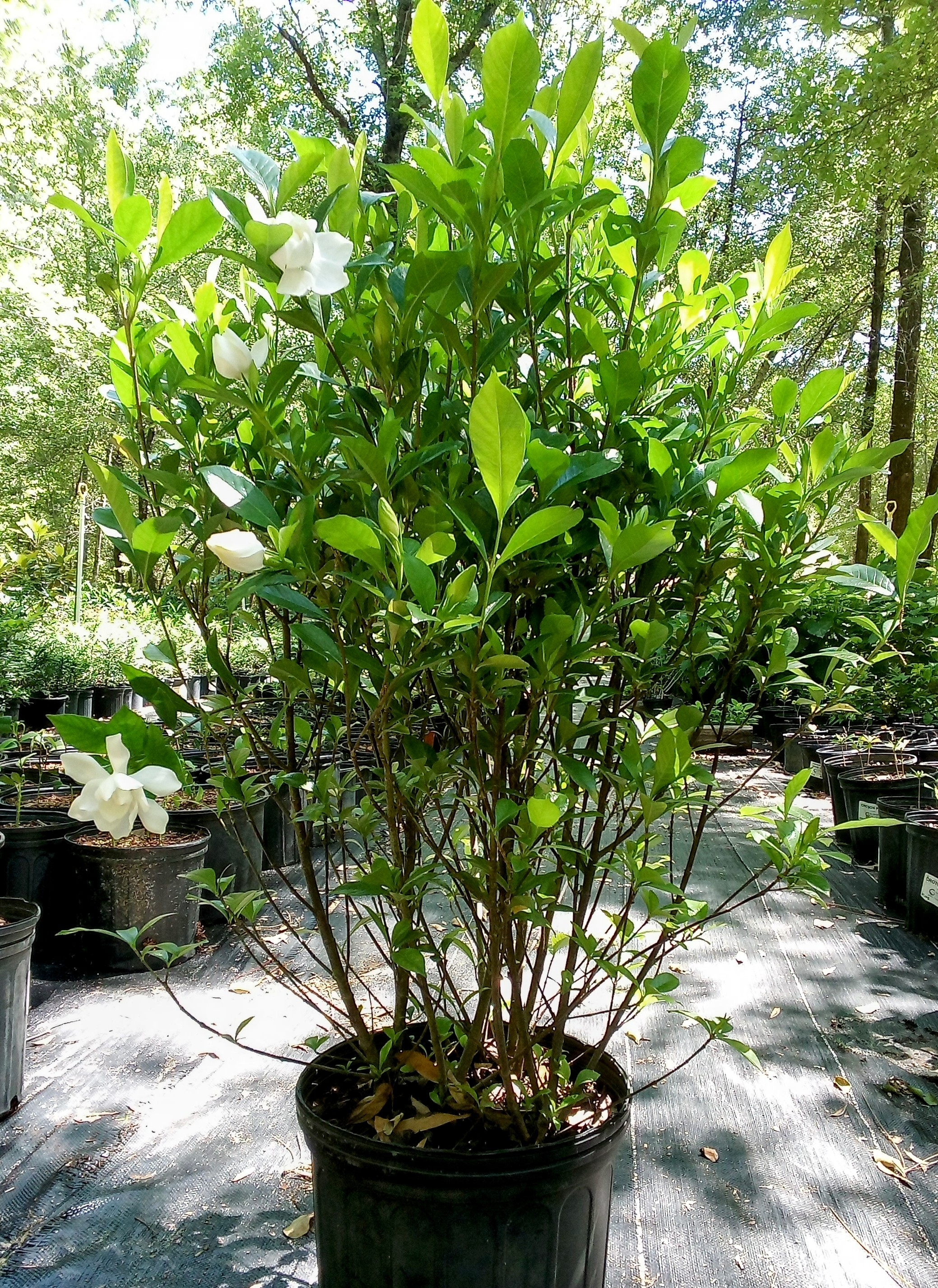 Amazing exotic perfume scent spans your yard with this beautiful white 3" wide double flowering evergreen shrub. Provides an abundance of flowers from Spring into Summer, with attractive glossary rich dark green leaves. Has a bushy, dense and upright form and is low maintenance. Excellent foundation, hedge, or single specimen. Likes morning sun with afternoon shade, or all day filtered sun. See Specifications below. Shop the August Beauty Gardenia for sale. Buy direct from a small family owned South Carolina grower.